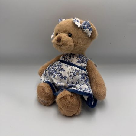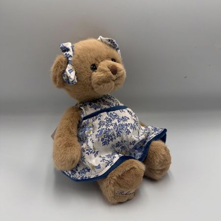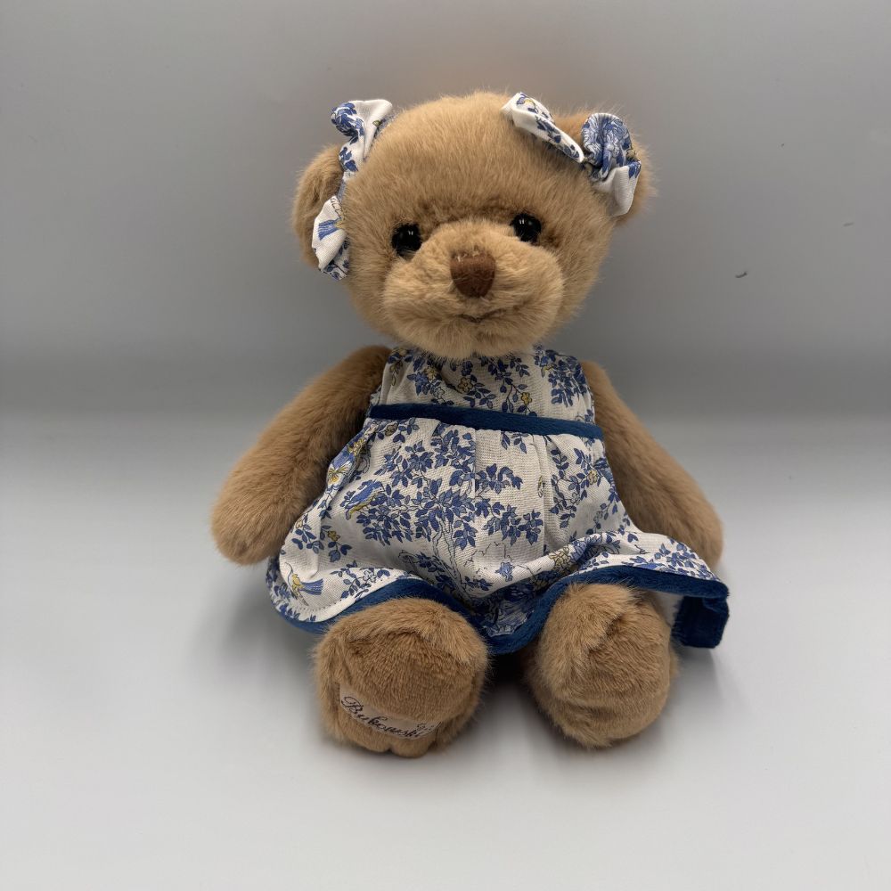Miś ubrany jest w piękną kwiecistą sukienkę w odcieniach niebieskiego, która nadaje maskotce eleganckiego i dziewczęcego charakteru. Przy uszach znajdują się dopasowane kokardki z kwiecistego materiału, dzięki czemu całość prezentuje się bardzo harmonijnie i uroczo. Isabelle to idealna przytulanka oraz piękny pomysł na prezent.