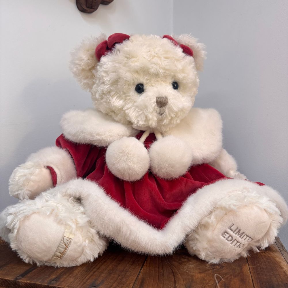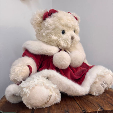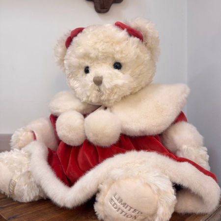 Miś Adriana to niezwykle elegancka misiowa dziewczynka, która urzeka swoim białym, mięciutkim futerkiem i świątecznym wyglądem. Ubrana w czerwoną zimową suknię z białym kołnierzykiem i uroczymi pomponami, wygląda jak prosto z zimowej bajki.