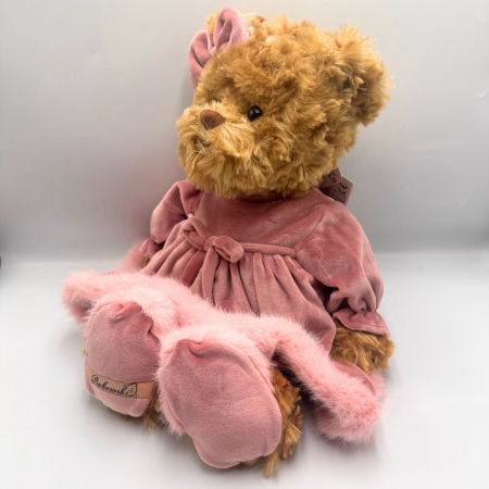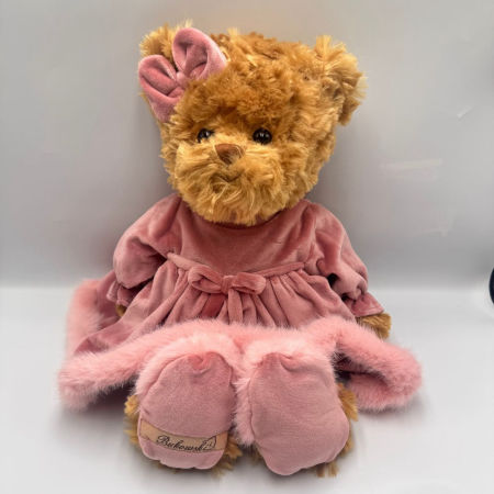 Aiko to urocza przytulanka z kolekcji Bukowski, która zachwyca elegancją i zimowym urokiem. Ten jasnobrązowy miś ubrany jest w różową sukienkę z pięknymi, starannie wykonanymi wykończeniami, które nadają mu delikatny, świąteczny charakter. Stylizację dopełniają różowe kapcie oraz kokardka przy uchu, dodająca mu dziewczęcego wdzięku.