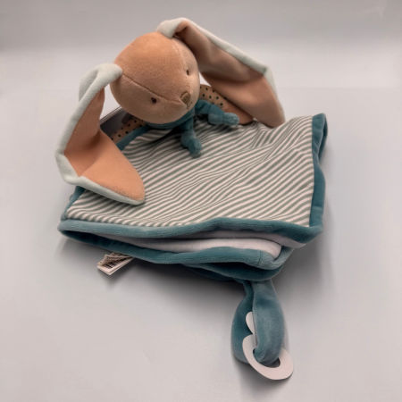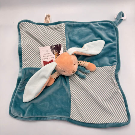 Baby Bunny Baby Rug to uroczy beżowy króliczek w formie płaskiego kocyka, który zapewnia komfort i bezpieczeństwo już od pierwszego dnia życia. Kocyk ma wymiary 30×30 cm i jest w niebieskim kolorze.