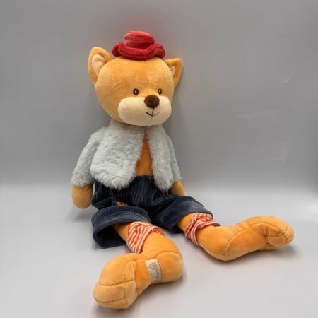 Ben to uroczy żółty kotek Bukowski o wysokości 25 cm, przeznaczony dla niemowląt od pierwszego dnia życia. Ubrany jest w niebieską kurteczkę i spodenki oraz czerwony kapelusik, co nadaje mu wyjątkowego charakteru.