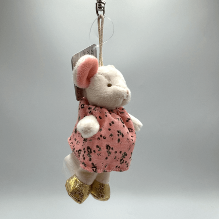Ingefrid to urocza mysia dziewczynka, która swoim wyglądem z pewnością oczaruje każdego! Wykonana z bardzo miękkiego futerka, Ingefrid ubrana jest w sukienkę w ciepłych kolorach ozdobioną wzorem kropek, co podkreśla jej dziewczęcy urok. Dzięki swoim rozmiarom (10 cm) jest idealnym breloczkiem, który możesz przypiąć do plecaka, torby lub używać jako ozdobę w pokoju dziecięcym. Jej oczka zostały starannie wykonane z czarnego akrylu, a pyszczek wyhaftowany brązową nicią, co dodaje jej niepowtarzalnego uroku. Z pewnością będzie miłym towarzyszem na co dzień.
