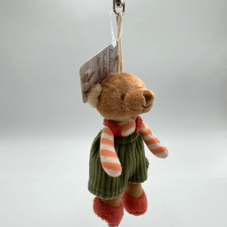 Breloczek Bukowski Mavi to niezwykle uroczy pluszowy miś, który od razu zaskarbi sobie Twoje serce! Wykonany z miękkiego futerka w brązowym kolorze, Mavi ubrany jest w zielone ogrodniczki, które nadają mu odrobinę zabawnego, chłopięcego charakteru. Misio ma delikatnie haftowane brązową nicią oczka i pyszczek, co nadaje mu bardzo sympatyczny wygląd. Z wysokością około 10 cm, Mavi będzie doskonałym towarzyszem na co dzień – idealny do kluczy, plecaka lub torby, wprowadzając ciepły akcent do Twojej codzienności.