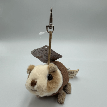 Piggy to uroczy breloczek w kształcie świnki morskiej, który idealnie łączy funkcjonalność z uroczym designem. Wykonana z krótkiego, miłego w dotyku futerka w kolorze biało-beżowym, Piggy ma duże, akrylowe oczka oraz zabawny pyszczek i nosek, starannie wyszyte brązową nicią. Zawieszka w kolorze srebrnym dodaje elegancji, czyniąc breloczek doskonałym dodatkiem do kluczy, plecaka czy torebki. Z wysokością około 10 cm, Piggy będzie również urocza jako ozdoba dziecięcego pokoju.