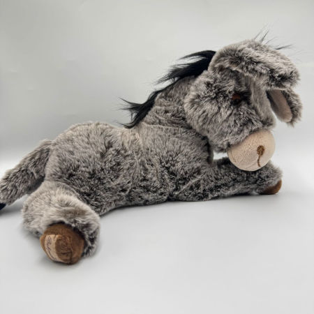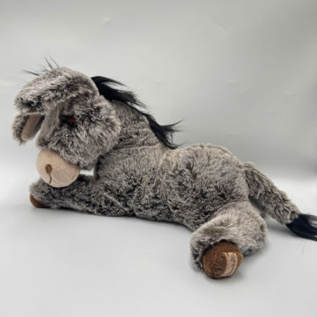 Jego błyszczące, czarne akrylowe oczka dodają mu wyrazistości i uroku, a haftowany nosek i buźka podkreślają spokojny, łagodny charakter. Wysokość 25 cm sprawia, że osiołek idealnie mieści się w dziecięcych rączkach – doskonały do noszenia, przytulania i wspólnego zasypiania.