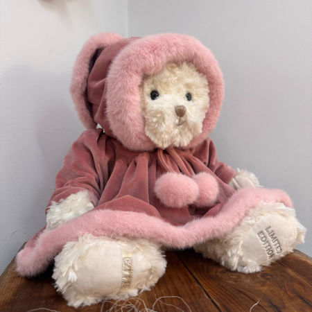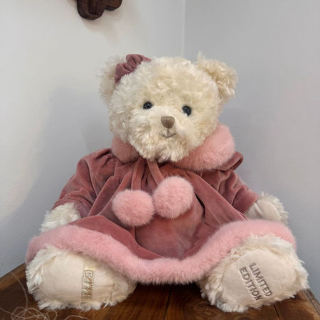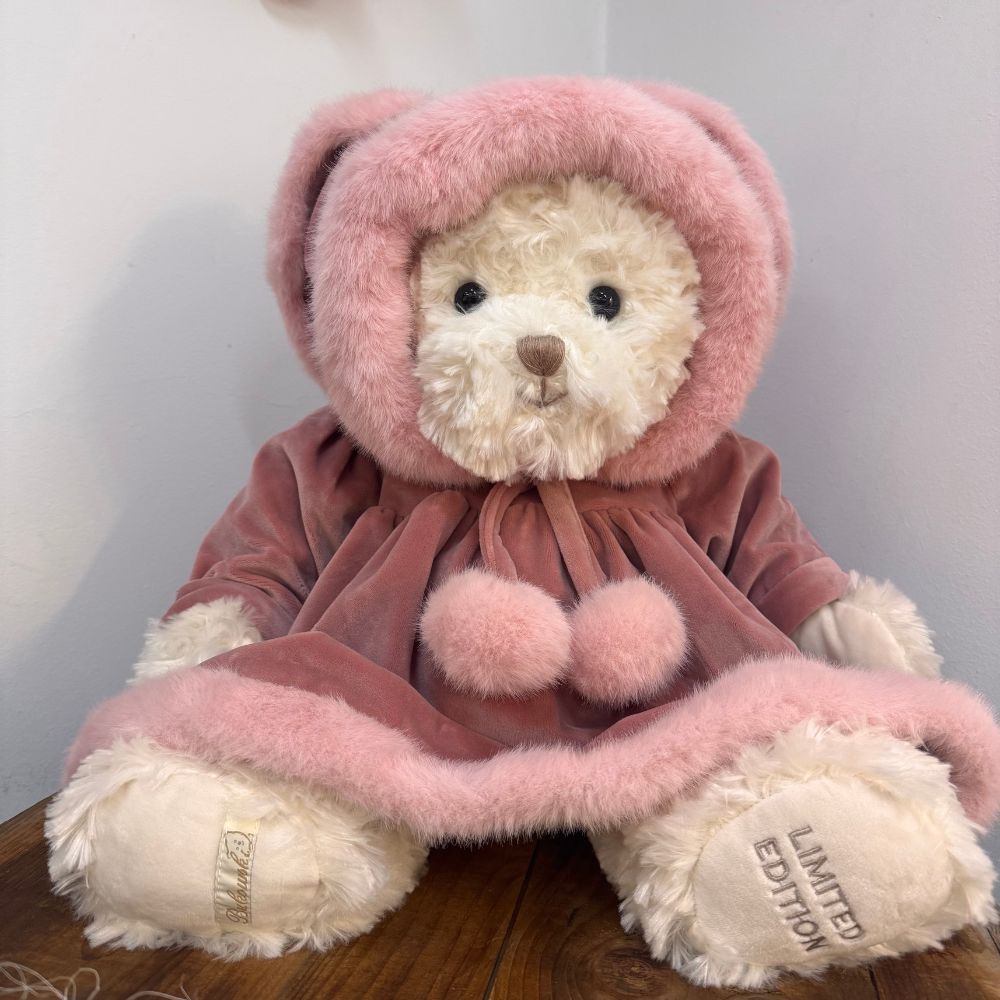 Miś Ellie to wyjątkowa pluszowa dziewczynka Bukowski Design, stworzona w ramach limitowanej edycji. Ma śnieżnobiały kolor futerka i jest ubrana w zjawiskową różową sukienkę z miękkim, futerkowym wykończeniem, które dodaje jej elegancji i zimowego uroku.
