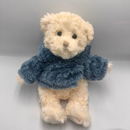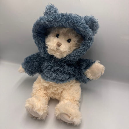 Lucas to uroczy, biały miś marki Bukowski ubrany w niebieski sweterek z kapturkiem, który można zdejmować. Wykonany z wyjątkowo miękkiego pluszu, idealnego do przytulania, zachwyca dbałością o każdy detal.