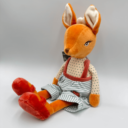 W tej wersji Happy Harald nosi intensywnie czerwone buciki oraz stylowe niebieskie spodnie, które harmonijnie kontrastują z jego futerkiem. Przy wysokości 30 cm jest idealny do tulenia, zabawy i dekoracji dziecięcego pokoju. Happy Harald to wyjątkowy towarzysz, który rozweseli każdy dzień i stanie się niezastąpionym przyjacielem każdego dziecka.