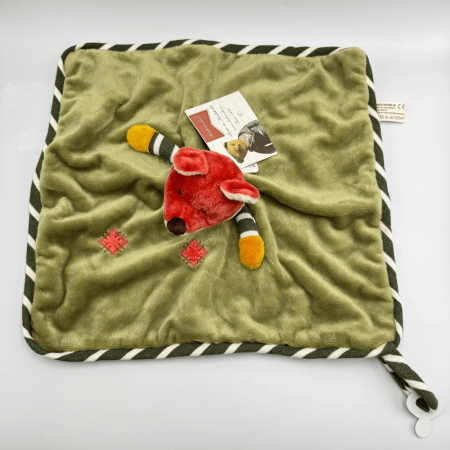 Foxy Baby Rug nie jest zwykłym kocykiem – łączy w sobie funkcję przytulanki i interaktywnej zabawki. Dzięki specjalnej dziurce na palec, rodzice mogą używać go jako pacynki, tworząc niezapomniane chwile zabawy i radości. Co więcej, kocyk został wyposażony w praktyczny uchwyt na smoczek, dzięki czemu jest nie tylko uroczy, ale także niezwykle funkcjonalny. Idealnie sprawdzi się jako prezent na każdą okazję, wnosząc ciepło i radość do każdego dziecięcego pokoju.