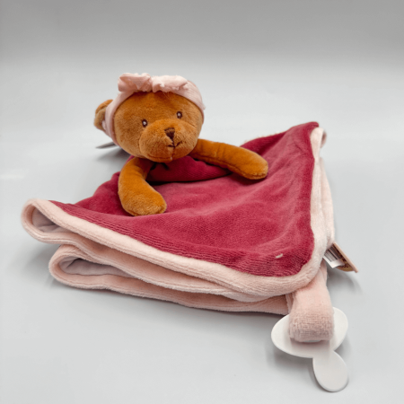 Kocyk dla niemowląt BUKOWSKI Happy Meli - Baby Rug to wyjątkowe połączenie przytulanki i praktycznego dodatku, zaprojektowane z myślą o najmłodszych. Ten płaski miś-kocyk o wymiarach 30x30 cm wykonany został z najwyższej jakości, miękkiego, krótkiego pluszu w kolorze brązowym, który jest niezwykle przyjemny w dotyku i delikatny dla wrażliwej skóry dziecka. Dzięki specjalnej dziurce na palec kocyk może pełnić funkcję pacynki, co umożliwia rodzicom lub opiekunom interaktywną zabawę z maluszkiem, rozwijającą jego wyobraźnię i zdolności manualne. Kocyk posiada również dodatkowy element umożliwiający przypięcie smoczka.