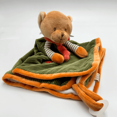 Mavi Baby Rug to wyjątkowy kocyk dla niemowląt, który łączy funkcję przytulanki i zabawki. Kocyk w niebieskim kolorze posiada główkę pluszowego misia, którego pyszczek został starannie wyszyty brązową nicią, nadając mu uroczego wyrazu. Wykonany z miękkiego i przyjemnego w dotyku pluszu, kocyk zapewnia komfort maluszkowi, a jego wymiary 30x30 cm sprawiają, że jest odpowiedni do przytulania i zabawy. Dzięki specjalnej dziurce na palec, może również pełnić rolę pacynki, zapewniając maluszkowi dodatkową rozrywkę. Kocyk posiada także uchwyt na smoczek, co czyni go bardzo funkcjonalnym. To doskonały wybór na prezent, który przyniesie maluszkowi wiele radości.