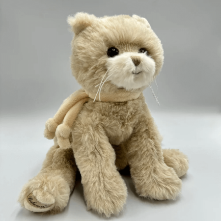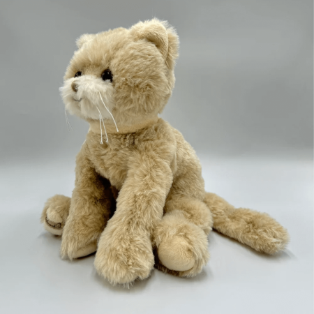Poznaj Catty, przepięknego pluszowego kotka o beżowym futerku średniej długości, który jest wyjątkowo mięciutki i przyjemny w dotyku. Jego akrylowe oczka, wąsy z miękkich sznureczków oraz starannie wyhaftowane nosek i uśmiech nadają mu wyjątkowego uroku. Pyszczek Catty został wykonany z białego futerka, a wnętrze uszu oraz spodnia część łapek wykonane zostały z pluszu, co sprawia, że kotek jest jeszcze bardziej wyrazisty i uroczy. Pod szyją nosi elegancki, uroczy szaliczek, który dodaje mu wyjątkowego charakteru. Maskotka mierzy 25 cm, co czyni ją idealnym towarzyszem zabawy i przytulania.