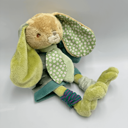 Pluszowy króliczek Benji to wyjątkowa przytulanka, która z pewnością zachwyci każdego malucha. Wykonany z miękkiego, przyjemnego w dotyku materiału, króliczek posiada długie, urocze uszy oraz starannie wyszyte brązową nicią oczka i pyszczek, co nadaje mu przyjazny wygląd. Benji ubrany jest w elegancki strój w odcieniach zieleni i niebieskiego, a jego szyję zdobi krawat, dodając mu wyjątkowego stylu. Mając 25 cm wysokości, jest idealnym towarzyszem zabaw i przytulanką dla najmłodszych, wnosząc radość i ciepło do każdego dziecięcego pokoju.