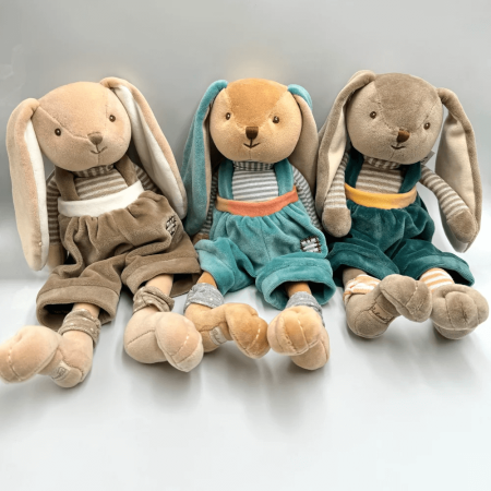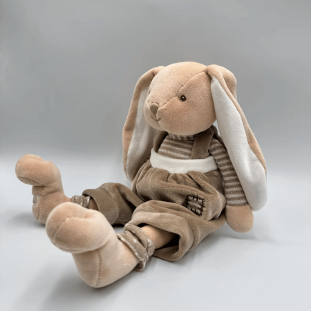 Bunny Brothers to urocze króliczki wykonane z niezwykle miękkiego materiału, co czyni je idealnymi przytulankami dla maluszków. Króliczki mają starannie wyszyte oczka i pyszczki, co nadaje im przyjaznego i ciepłego wyrazu. Na ich ciałkach znajdują się zabawne, połatane beżowe spodenki, które dodają im uroku. Z wysokością 30 cm, Bunny Brothers w beżowych spodenkach to doskonały wybór na prezent, wnoszący radość i komfort do każdego pokoju dziecka.