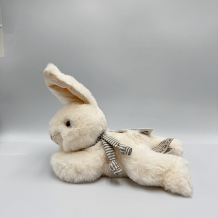 Coco to uroczy pluszowy królik o białym futerku, który wyróżnia się swoją subtelną elegancją. Posiada czarne akrylowe oczka oraz wyszyte beżową nicią pyszczek i nosek, co nadaje mu przyjazny wyraz. Coco ma zawiązany szary szalik pod szyją, który podkreśla jego urok. Z wysokością 15 cm, Coco będzie idealnym towarzyszem do zabawy oraz przytulania, sprawdzając się doskonale jako prezent dla maluchów.