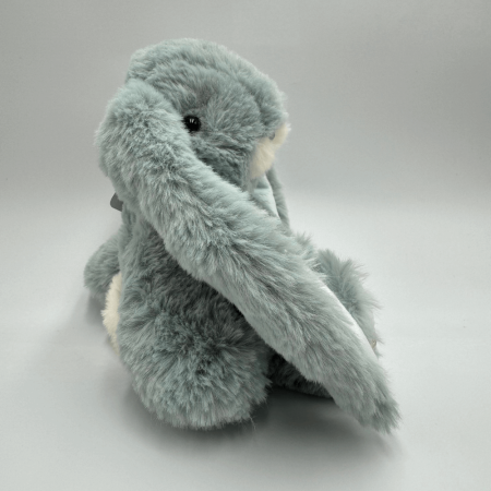 Junior Kanini - Pearl Blue to uroczy króliczek o wyjątkowym jasno-niebieskim futerku, które nadaje mu niezwykły, delikatny wygląd. Jego duże, czarne oczka wykonane z akrylu przyciągają wzrok, a starannie haftowany beżową nicią pyszczek dodaje mu wyrazistości i uroku. Długie, zwisające uszy nadają mu przyjazny i zabawny charakter, sprawiając, że Junior Kanini - Pearl Blue staje się wyjątkowym towarzyszem każdej zabawy.