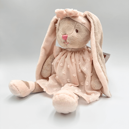Lenka to uroczy 30-centymetrowy pluszowy króliczek, wykonany z miękkiego, przyjemnego w dotyku materiału. Jej oczka i pyszczek starannie wyszyto brązową nicią, nadając jej przyjemny i delikatny wyraz. Lenka ubrana jest w różową sukienkę, a jej głowę zdobi kokardka. Na stopach nosi białe buciki, co dodaje jej elegancji. Ten pluszowy króliczek jest idealny dla najmłodszych, zapewniając dzieciom ciepło i radość podczas zabawy.