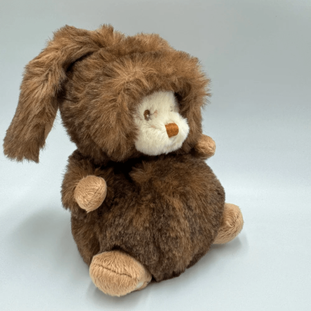Ziggy Winter Rabbit w brązowym stroju to wyjątkowy miś o kremowym, miękkim futerku. Jego strój na zimowe dni składa się z kapturka z długimi, zajączkowymi uszami, wykonanego z przyjemnego w dotyku materiału. Dzięki odpinanemu kapturkowi można łatwo zmienić wygląd maskotki. Starannie wyszyty pyszczek brązową nicią oraz czarne akrylowe oczka nadają mu ciepłego wyrazu. Ten 15-centymetrowy miś jest idealny zarówno do zabawy, jak i dekoracji.