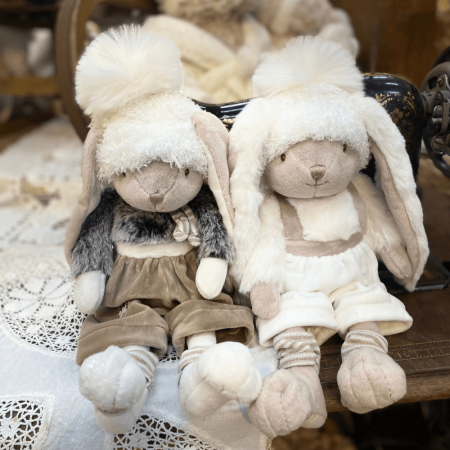 Deen to uroczy królik, który zachwyca swoim przytulnym wyglądem i zimową stylizacją. Ma 30 cm wysokości, co czyni go doskonałym towarzyszem do przytulania. Jego wyszywane oczka, pyszczek i nosek nadają mu łagodny, ciepły wyraz, który wzrusza każdego, kto na niego spojrzy. Deen nosi szary sweterek oraz brązowe ogrodniczki z łatami, które podkreślają jego przyjazny, swobodny styl. Na głowie ma białą czapkę z puszystym pomponem, która doskonale pasuje do zimowego klimatu. Dzięki mięciutkiemu futerku, Deen jest idealnym wyborem dla najmłodszych dzieci, zachęcając do przytulania i zabawy.