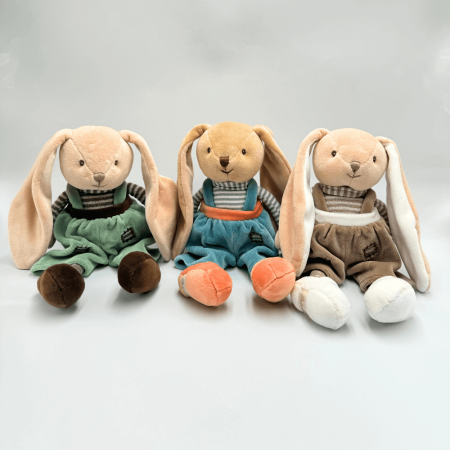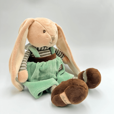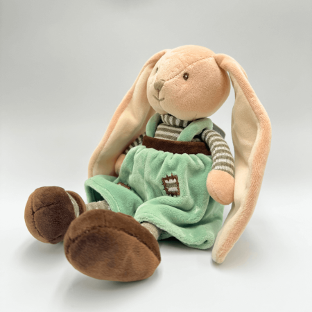 Little Bunny Brothers to uroczy królik, który idealnie nadaje się na przytulankę dla najmłodszych. Został wykonany z niezwykle miękkiego materiału, a jego starannie wyszyte oczka i pyszczek dodają mu przyjaznego wyglądu. Zielone spodenki, które nosi, nadają mu świeżego i radosnego charakteru. Dzięki wysokości 20 cm, królik jest łatwy do przytulania i stanowi doskonały wybór dla dzieci w każdym wieku. Jest w pełni bezpieczny, wykonany z materiałów przyjaznych skórze dziecka. Little Bunny Brothers to wesoła przytulanka, która wprowadzi radość do każdego pokoju dziecięcego.