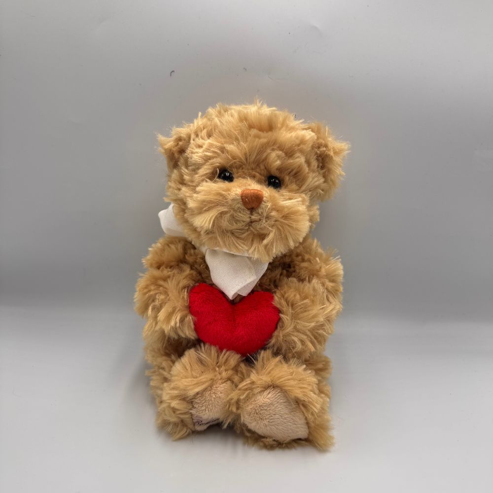 Lovely Anton to 25-centymetrowy brązowy miś, który zachwyca klasycznym wyglądem i ciepłym charakterem. W łapkach trzyma czerwone serce, symbolizujące miłość i bliskość, a pod szyją nosi elegancką białą kokardkę, która dodaje mu subtelnego uroku. Jego akrylowe oczka oraz starannie wykonany pyszczek nadają mu łagodny, przyjazny wyraz.