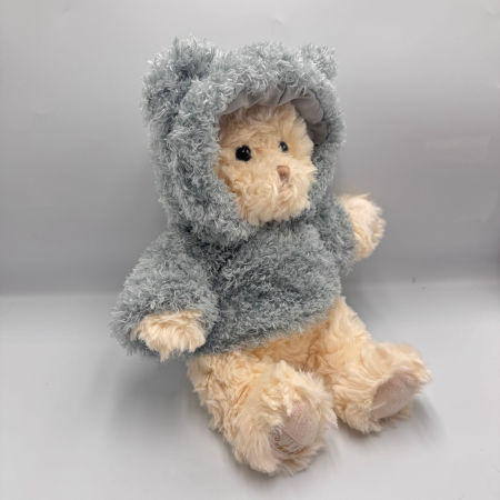 Lucas to uroczy, biały miś marki Bukowski ubrany w niebieski sweterek z kapturkiem, który można zdejmować. Wykonany z wyjątkowo miękkiego pluszu, idealnego do przytulania, zachwyca dbałością o każdy detal.