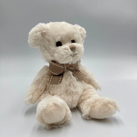 Miś Bukowski Caspar to elegancki, mały niedźwiadek, który zachwyca swoim białym, wyjątkowo miękkim futerkiem. Jego klasyczny styl podkreśla brązowa kokarda zawiązana pod szyją, dodając mu szyku i uroku. Caspar ma czarne, błyszczące akrylowe oczka oraz starannie wyszyty brązową nicią pyszczek i nosek, które nadają mu przyjazny i łagodny wyraz. Ze względu na swoją kompaktową wysokość 15 cm, jest idealnym towarzyszem zabawy oraz świetnym dodatkiem do dziecięcego pokoju.