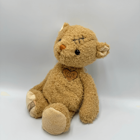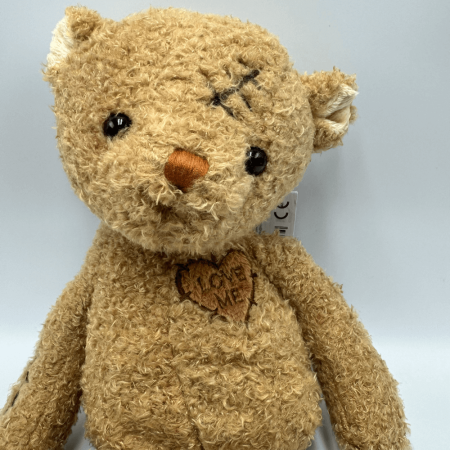 Jego błyszczące, czarne akrylowe oczka emanują ciepłem i serdecznością, a starannie wyhaftowany nosek i pyszczek dodają mu łagodnego, przyjaznego wyrazu. Charakterystycznym detalem, który wyróżnia Juliana, jest czarne przeszycie biegnące przez jego głowę, co podkreśla unikalny design tej maskotki. Na klatce piersiowej misia widnieje naszyte serduszko z napisem "LOVE ME", co sprawia, że Julian to idealny symbol miłości i troski, doskonały na wyjątkowy prezent.