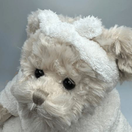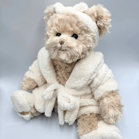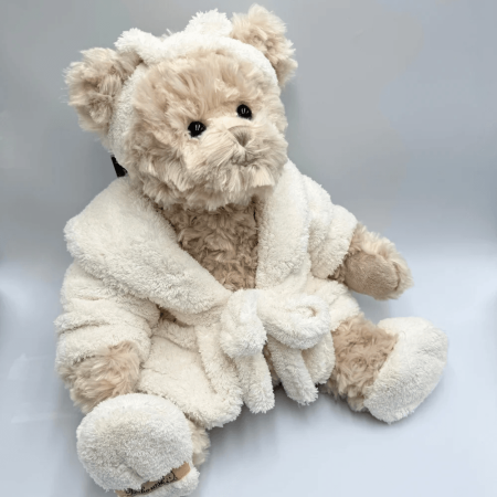 Lady Hamilton to urocza, elegancka misia o jasno szarym futerku, która zachwyca swoim urokiem i wdziękiem. Ma 40 cm wysokości i jest niezwykle miękka, co czyni ją idealnym towarzyszem do przytulania. Jej duże czarne oczka z akrylu dodają jej ciepłego wyrazu, a starannie wyszyty pyszczek podkreśla jej delikatność. Lady Hamilton jest ubrana w elegancki, biały szlafroczek oraz pasujące pantofelki, które dopełniają jej wygląd. Na głowie nosi urocza opaskę, która nadaje jej jeszcze więcej uroku. To idealna przytulanka dla osób, które cenią wyjątkowy i klasyczny styl.