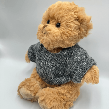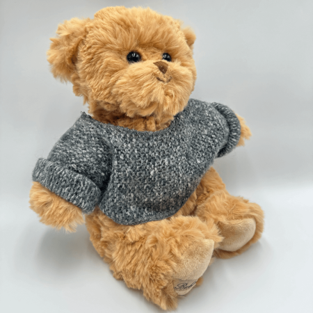 Miś Louis w niebieskim sweterku to wyjątkowy towarzysz każdej zabawy. Jego 25 cm wysokości i mięciutkie futerko w połączeniu z czarnymi, akrylowymi oczkami tworzą niezwykle przyjazny wygląd. Pyszczek misia, starannie wyszyty brązową nicią, nadaje mu ciepły i serdeczny wyraz.