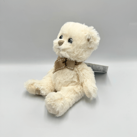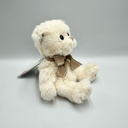 Lovely Caspar to wyjątkowy miś, który zachwyca swoją subtelnością i elegancją. Jego beżowe futerko o średniej długości jest niezwykle miękkie w dotyku, co czyni go idealnym towarzyszem do przytulania. Pyszczek misia został starannie wyszyty beżową nicią, a akrylowe oczka w ciemnym kolorze nadają mu wyrazistości i łagodności. Na szyi Caspar nosi delikatną beżową kokardę, która podkreśla jego urok i sprawia, że jest jeszcze bardziej wyjątkowy. Co wyróżnia Lovely Caspar spośród innych misiów, to wyhaftowane czerwone serduszko na jednej z jego stópek. To mały, ale bardzo ważny detal, który czyni go idealnym prezentem pełnym miłości i ciepła. Caspar ma około 18 cm wysokości, co czyni go doskonałym towarzyszem zabawy i poczuciem bezpieczeństwa dla dzieci. Dzięki swojemu uniwersalnemu wyglądowi będzie pasował zarówno do dziecięcego pokoju, jak i stanowił piękną ozdobę w każdej kolekcji pluszaków. Lovely Caspar to miś, który z pewnością zostanie ulubionym przyjacielem każdego, kto go otrzyma.