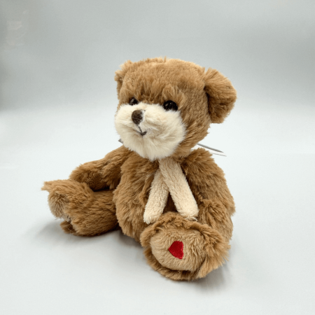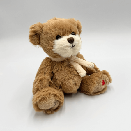 Miś ma około 15 cm wysokości, co czyni go doskonałym towarzyszem zarówno do zabawy, jak i dekoracji dziecięcego pokoju. Na szyi nosi elegancki kremowy szalik, który podkreśla jej szykowny i stylowy wygląd. Co więcej, na jednej z łapek misia znajduje się urocze serduszko wyhaftowane czerwoną nicią, co dodaje jej jeszcze większego uroku.