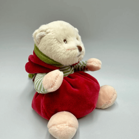 Miś Bukowski Ziggy Cherry to słodka pluszowa maskotka o wysokości 15 cm, która zachwyca miękkim futerkiem w jasnym kolorze. Miś jest przebrany za wisienkę, a jego zabawny strój wprowadza w letni, radosny klimat. Kapturek w kształcie wisienki jest zdejmowany, pozwalając na zmianę wyglądu misia, a po jego zdjęciu odsłania klasyczną białą główkę misia Ziggy. Jego oczka i pyszczek zostały starannie wyszyte brązową nicią, co nadaje mu przyjazny wygląd.