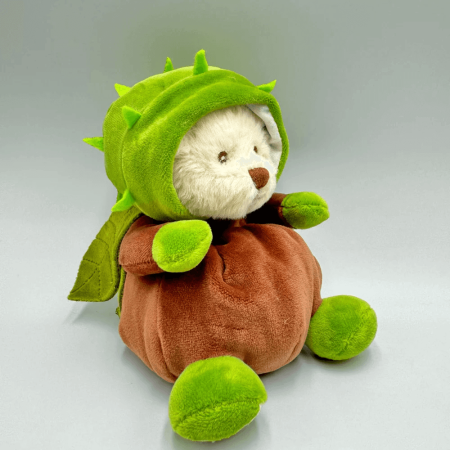 Ziggy Chestnut to wyjątkowy pluszowy miś, który z pewnością wywoła uśmiech na twarzy każdego miłośnika przytulanek. Ten uroczy niedźwiadek wyróżnia się oryginalnym przebraniem kasztana z zielonymi listkami, co czyni go idealnym towarzyszem w jesienne dni. Wykonany z krótkiego, białego futerka, Ziggy zachwyca swoją miękkością i delikatnością, sprawiając, że trudno się od niego oderwać.
