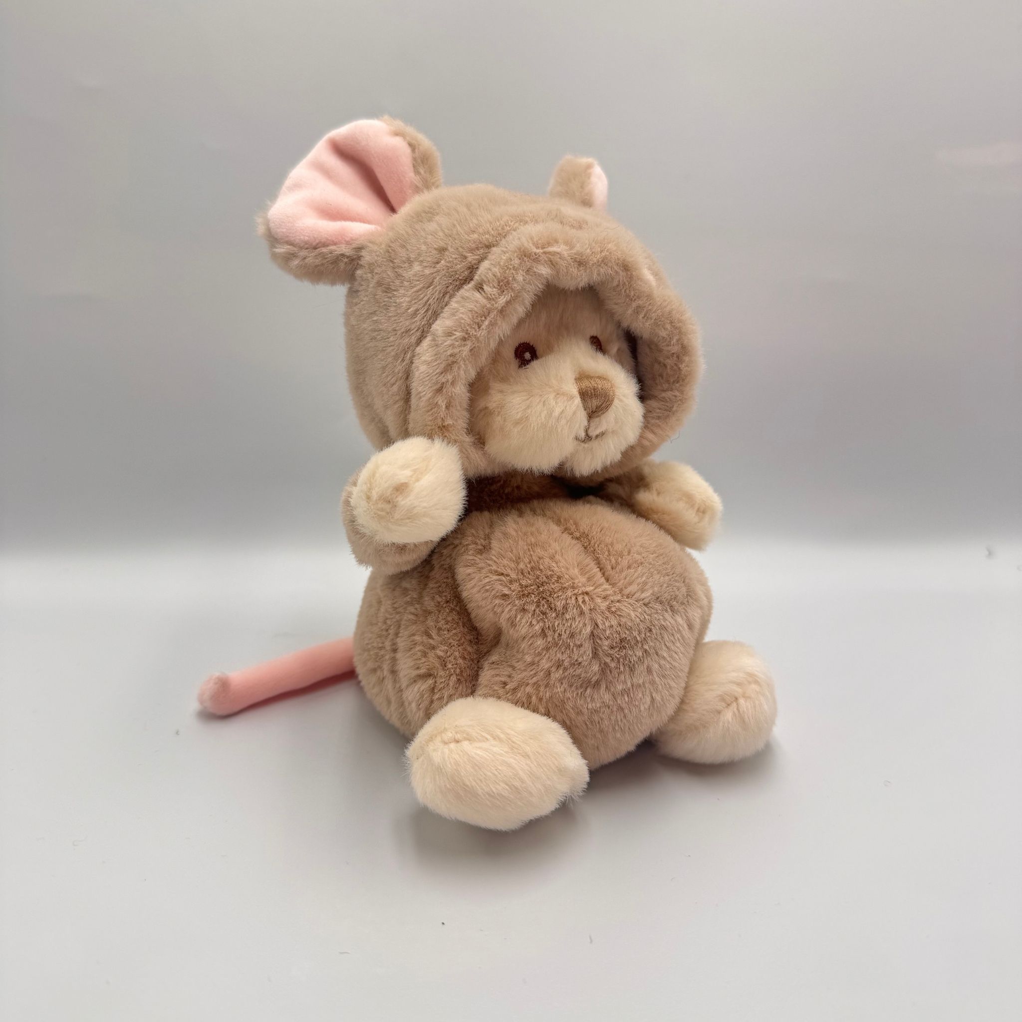 Ziggy Mouse w wersji brązowej to uroczy miś o ciepłym, brązowym futerku, który zachwyca swoją miękkością i urokiem. Jego przebranie w stylu myszki, w odcieniu ciepłego brązu, jest równie przyjemne w dotyku, co sprawia, że jest idealnym towarzyszem do przytulania. Odpinany kapturek daje możliwość zmiany wyglądu, co sprawia, że miś staje się jeszcze bardziej uniwersalny w zabawie. Wyhaftowany pyszczek i akrylowe oczka nadają mu wyjątkowego charakteru, który przyciąga uwagę.