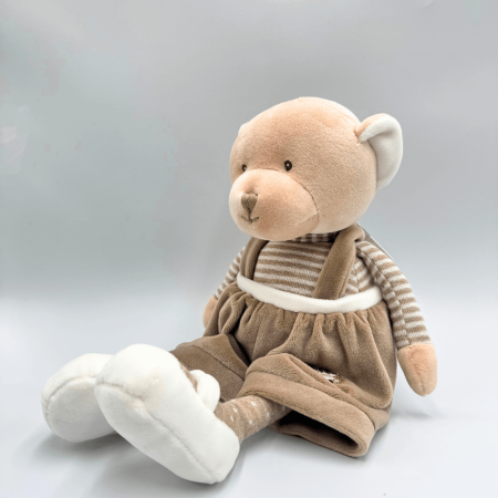 Miś Maverick to urocza przytulanka, która stanie się niezastąpionym towarzyszem maluszka. Wykonany z miękkiego, krótkiego materiału, który jest niezwykle przyjemny w dotyku, Maverick ma starannie wyszyte brązowe oczka i pyszczek, co nadaje mu delikatnego wyrazu. Ubrany w pasiastą bluzeczkę i brązowe ogrodniczki, miś prezentuje się bardzo stylowo i elegancko. Jego wysokość to 30 cm, co sprawia, że jest doskonały do przytulania i zabawy, a także staje się wyjątkowym przyjacielem dzieci. Produkt zapakowany jest w eleganckie pudełko prezentowe Gift Box, co czyni go idealnym pomysłem na prezent.