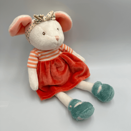 Ingefrid to urocza, pluszowa myszka, która od razu zdobywa serca dzięki swojej pomarańczowej sukience i eleganckiej kokardzie na głowie. Wykonana z miękkiego, krótkiego futerka, myszka Ingefrid ma 25 cm wysokości i jest idealnym towarzyszem do przytulania. Jej delikatny wygląd oraz przyjazny uśmiech sprawiają, że jest doskonałym wyborem na prezent na każdą okazję, wnosząc radość i ciepło do każdego malutkiego serduszka.