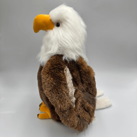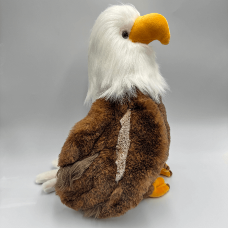 Przedstawiamy Scouta – wyjątkowego pluszowego orła bielika, który zachwyca nie tylko wyglądem, ale i starannością wykonania. Jego średniej długości brązowe futerko pokrywa tułów i skrzydła, natomiast dłuższe, białe futerko doskonale imituje majestatyczne upierzenie głowy. Żółty dziób oraz akrylowe oczka nadają mu realistyczny i przyciągający uwagę wygląd. Scout ma 30 cm wysokości, co czyni go idealnym towarzyszem zabaw oraz piękną dekoracją w dziecięcym pokoju.