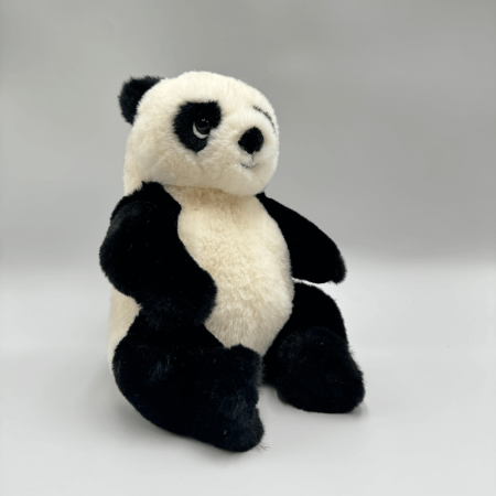 Panda Baby Jie Jie to niezwykle urocza maskotka, która zachwyca elegancją i subtelnością. Inspirowana wyglądem dorosłej pandy, przyciąga uwagę swoim miękkim futerkiem w kontrastowych barwach bieli i czerni, które dodają jej autentyczności. Starannie wykonane detale, takie jak wyszywany nosek i pyszczek, a także duże, czarne akrylowe oczy, czynią ją jeszcze bardziej uroczą.