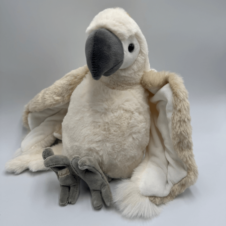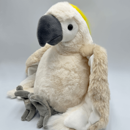 Mango Parrot to wyjątkowa pluszowa papuga, która zachwyca swoją elegancją i urokliwym wyglądem. Wykonana z miękkiego, białego futerka, ma piękne, kolorowe skrzydła w odcieniach żółci, które przyciągają wzrok. Jej czarne akrylowe oczka nadają jej radosnego wyrazu, a szary dziób oraz łapki dopełniają całość. Mango Parrot ma wysokość 30 cm, co sprawia, że jest idealnym towarzyszem zabaw i kreatywnych opowieści.