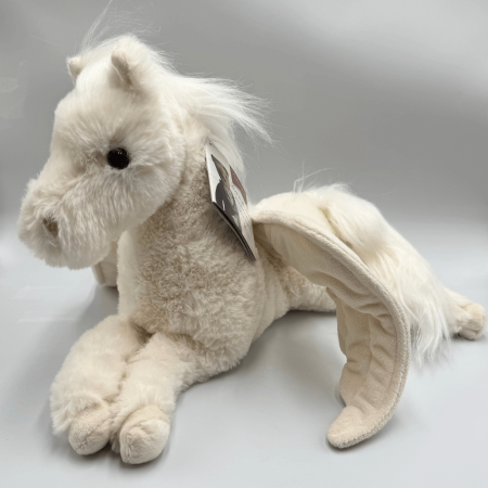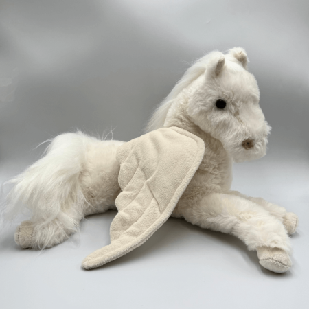 Pegasus to wyjątkowy, biały pluszowy pegaz, który oczaruje każdego dziecka. O wysokości 40 cm, przyciąga wzrok swoim bajkowym wyglądem. Jego długa, miękka grzywa oraz ogon nadają mu niepowtarzalnego uroku, a akrylowe oczka błyszczą w przyjaznym blasku, dodając mu życia. Pyszczek pegaza został starannie wyszyty, co sprawia, że jego wyraz twarzy jest pełen sympatii.