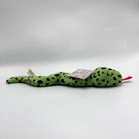 Peter the Snake to uroczy, pluszowy wąż stworzony z myślą o najmłodszych miłośnikach zwierzątek. Jego miękkie, zielone futerko w czarne kropki przyciąga wzrok, a giętka forma zachęca do zabawy i przytulania. Charakteru dodaje mu wystający czerwony język oraz czarne, błyszczące oczka, które nadają mu psotnego, ale przyjaznego wyglądu. Z długością 25 cm Peter idealnie mieści się w dziecięcych ramionach, stając się wiernym towarzyszem codziennych przygód.
