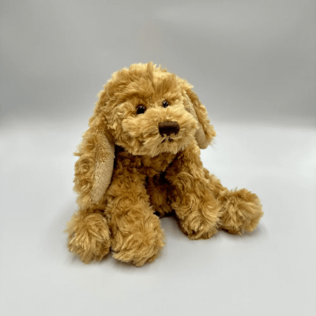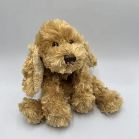 Buddy to uroczy pluszowy piesek z długim, kędzierzawym futerkiem w ciepłym, jasnobrązowym odcieniu. Jego miękkie futerko sprawia, że jest wyjątkowo przyjemny w dotyku, idealny do przytulania. Błyszczące, czarne akrylowe oczy nadają mu ciepłe i przyjazne spojrzenie, a starannie wyszyty brązową nicią nosek i pyszczek podkreślają jego łagodny charakter. Buddy ma 25 cm wysokości, co czyni go idealnym towarzyszem dla każdego, kto szuka pluszowego przyjaciela na każdą chwilę.