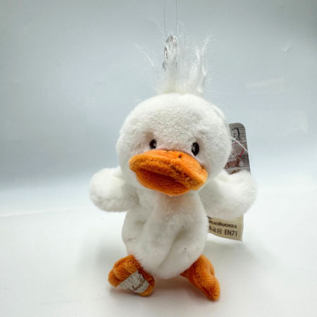 Quack kr w białej wersji to elegancka i ponadczasowa kaczuszka, która urzeka swoją prostotą i urokiem. Jej śnieżnobiałe, mięciutkie futerko w połączeniu z intensywnie pomarańczowym dziobkiem i łapkami tworzy kontrastową, a zarazem harmonijną całość. Błyszczące, czarne akrylowe oczka i delikatnie wyprofilowany dzióbek sprawiają, że kaczuszka wygląda ciepło i przyjaźnie.