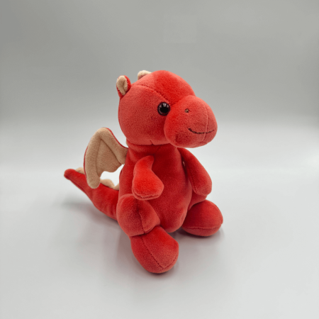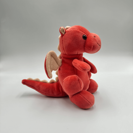 Baby Drago to uroczy smok w kolorze intensywnej czerwieni, który przyciąga wzrok i zachwyca swoim miękkim futerkiem. Jego wysokość wynosi około 15 cm, co sprawia, że jest idealnym towarzyszem do przytulania. Uśmiechnięty pyszczek, starannie wyszyty brązową nicią, oraz czarne akrylowe oczka dodają mu uroku i charakteru. Smok posiada charakterystyczne skrzydła oraz kolce na grzbiecie, które sprawiają, że wygląda jeszcze bardziej fantastycznie. Czerwony Baby Drago to idealny wybór dla dzieci, które uwielbiają kolorowe postacie z bajek.