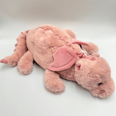 Smok Laying Drago - Ruby jest prawdziwym dziełem sztuki wśród maskotek. Intensywny rubinowy kolor nadaje mu wyjątkowego charakteru, który wprowadza do wnętrza element magii i elegancji. Jego efektowne skrzydła oraz długi, elegancki ogon przyciągają uwagę i sprawiają, że smok staje się fantastycznym dodatkiem do pokoju dziecięcego.