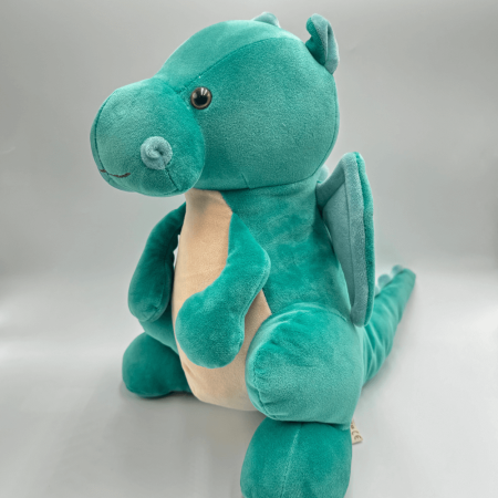 Smok Bukowski The Big Drago - TEAL to prawdziwa ozdoba każdego pomieszczenia. Jego głęboki odcień morskiej zieleni nadaje mu elegancki i tajemniczy wygląd. Ozdobne skrzydła oraz szczegóły w postaci wyrazistych oczek i haftowanego uśmiechu sprawiają, że smok wyróżnia się na tle innych maskotek. To idealny wybór dla osób szukających czegoś wyjątkowego i pełnego charakteru.