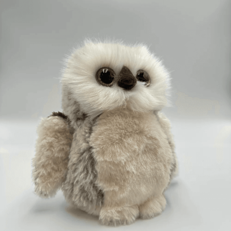 Sowa Sweet Hoho to niezwykle urocza maskotka, która zachwyca swoim szaro-białym, gęstym futerkiem, miękkim i przyjemnym w dotyku. Jej rozłożone skrzydełka dodają jej niepowtarzalnego wdzięku, a błyszczące, czarne akrylowe oczka przyciągają uwagę, sprawiając, że trudno się od niej oderwać. Wyhaftowany brązową nicią dziób to delikatny akcent, który podkreśla jej subtelny wygląd.