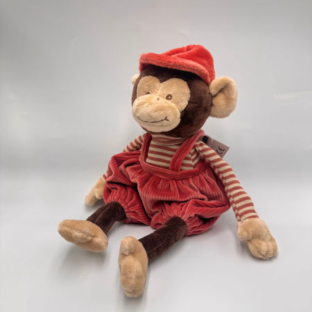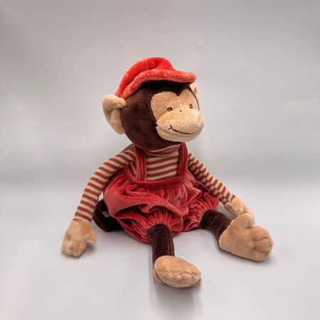 Małpka Winston to urocza brązowa małpka, która zachwyci każde dziecko swoim wesołym wyglądem. Ubrana jest w czerwone spodenki ogrodniczki i pasującą czapeczkę, co nadaje jej wyjątkowego charakteru. Jej oczka i pyszczek są starannie wyszyte, dzięki czemu jest całkowicie bezpieczna już od pierwszego dnia życia.