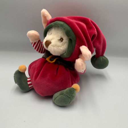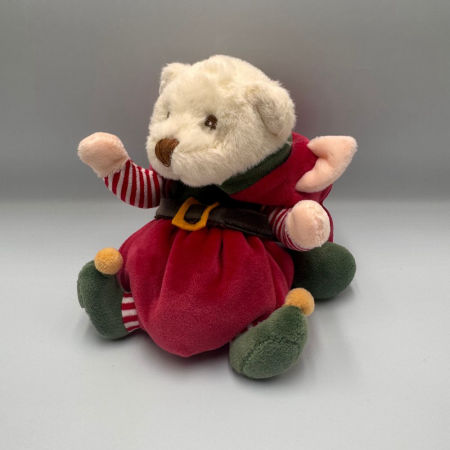 Ziggy Santa’s Little Helper to uroczy biały miś w świątecznym wydaniu, który z pewnością wprowadzi magiczną, bożonarodzeniową atmosferę. Ubrany w strój elfa w czerwono-zielonych barwach, wygląda niezwykle radośnie i przytulnie. Jego kapturek można zdjąć, co dodaje zabawce interaktywności i uroku.